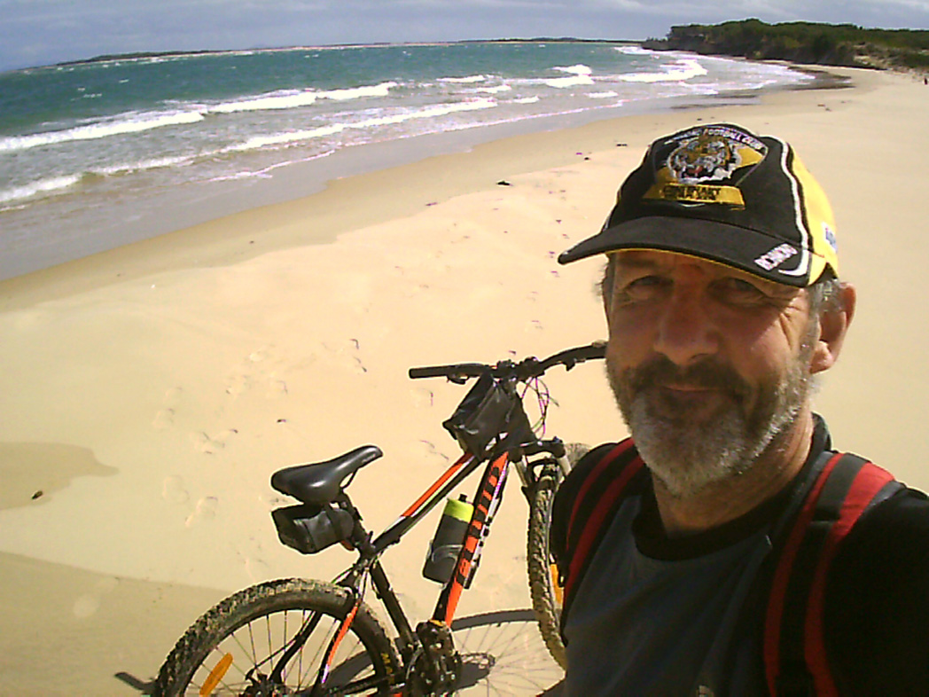 While I had some insight to what was install and had consulted and spoken to other intrepid adventurers before arriving here, I knew this challenge was going to be a process I would have to figure out for myself. Ninety Mile Beach is a high energy, wave dominated longshore beach; owing to the specific orientation of the beach to the ocean currents, swell and wave action, Ninety Mile Beach is predominantly influenced by heavy in-shore breaks, there are regular very strong longshore and rip currents; often with a pronounced easterly drift. This affects the condition of the beach sand in the tidal, wave affected zone. the continual sand drift tends to make the beach less compact and stable for bicycle riding as you might find on many other east coast beaches. My best chance for good riding conditions on this beach was limited close to the very low tides. As the morning, low tides on the east coast of Australia are usually the lower tides, one or maybe two hours either side of the morning low tide was going to be my best time.