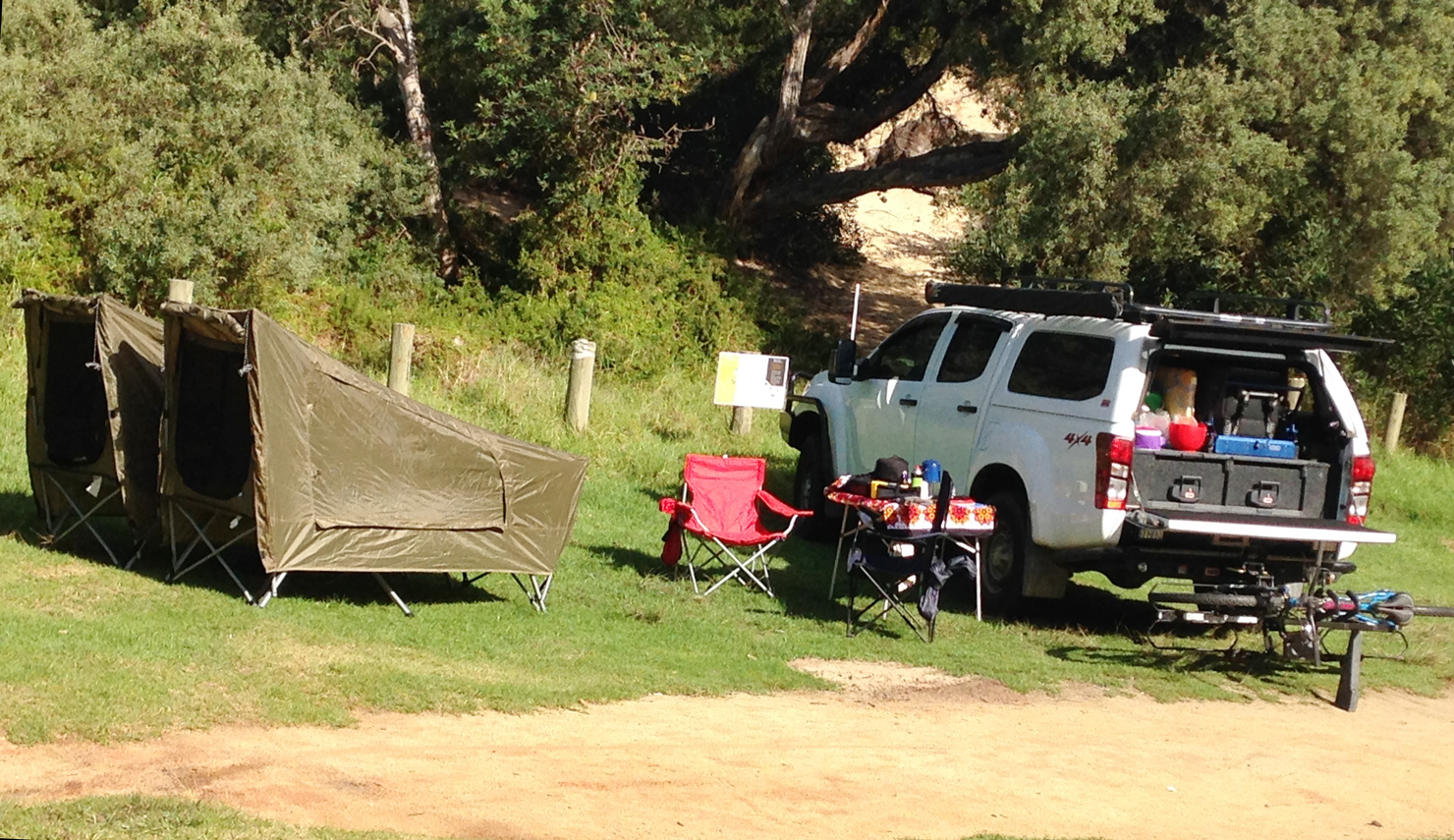 The test run that day involving just 8.9km of Ninety Mile Beach mostly involved pushing the bike along the beach. It was only really the later parts of that afternoon did I get any chance to ride for more than 100m at any one time. I did arrived at Reeves Beach at 17:05. I wrote in my trusty waterproof notebook “20% bike if lucky”.  Joanne had already driven up from McLoughlins Beach and had single handed set up camp and prepared a great curry dinner. There was really nothing for my to do when I got there but clean my bike and gear in preparation for an early start the next day. Thanks again Joanne.