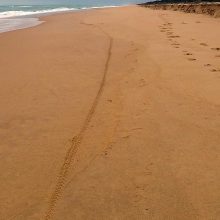 Joanne agree to drive me back at 06:00 to my previous day’s beach exit point, this having been marked on my Garman GPS. As the previous afternoon beach trekking had been very difficult, I thought it might be best to start the morning without the bike.