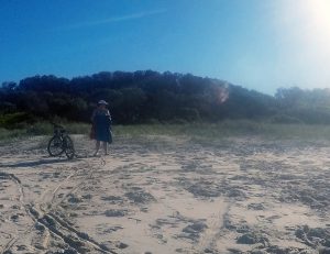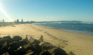 We arrived in Lennox Head on a beautiful warm sunny day. The place seemed so inviting we changed our plans and booked into the Caravan Park at Lennox Head directly across the road from the beach side carpark. Originally our intention was to arrive, complete the beach and then move on. Maybe the holiday mood is kicking we decided to stay and just enjoy the experience. Joanne decided to join me for the ride down to the start and the 1.5km ride back. She then decided to relax on the beach allowing me to power on up the beach at an average speed of 19.4km/h. The sand conditions were exceptional for riding. I was so glad I chose to ride this beach in its entirety, I did have the option of driving part of the beach as 4WD is allowed on about 3km just north of the Surf Life Saving Club.
