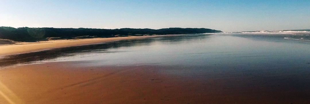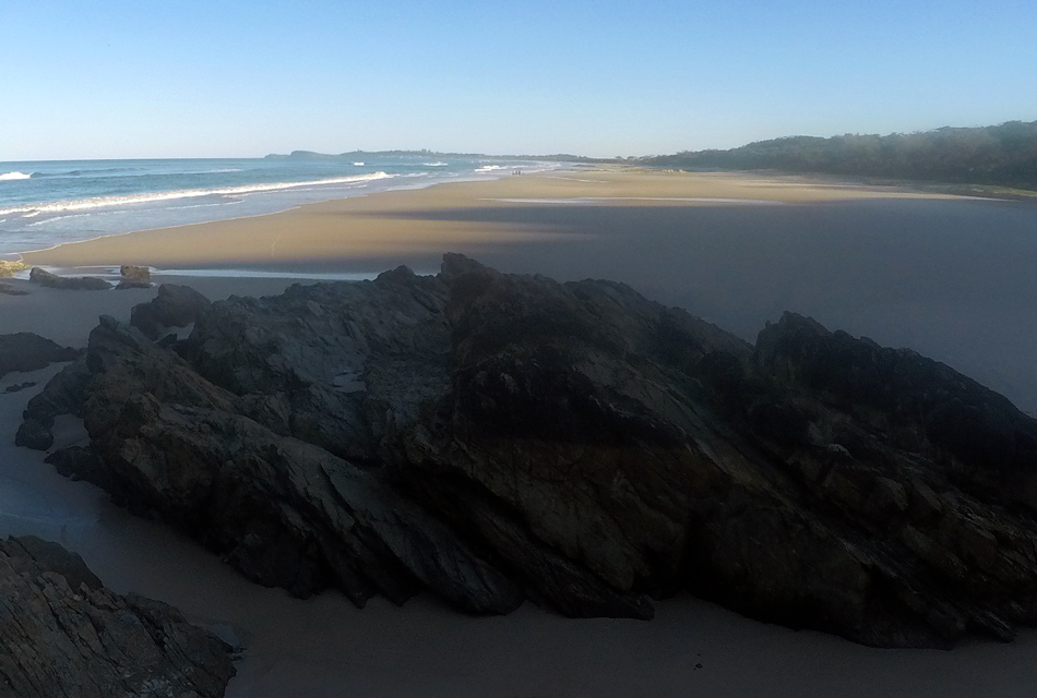 Seven Mile Beach is only 8.5 km long (5.3 mile) and while it is suffering some erosion at the southern end, it certainly has not lost 2 miles since its naming. This is an interesting beach that begins at the rain forest covered Jews Head and runs south backed by the 2km wide undeveloped Newrybo Swamp and freshwater Lake Ainsworth both part of a low Pleistocene barrier system.